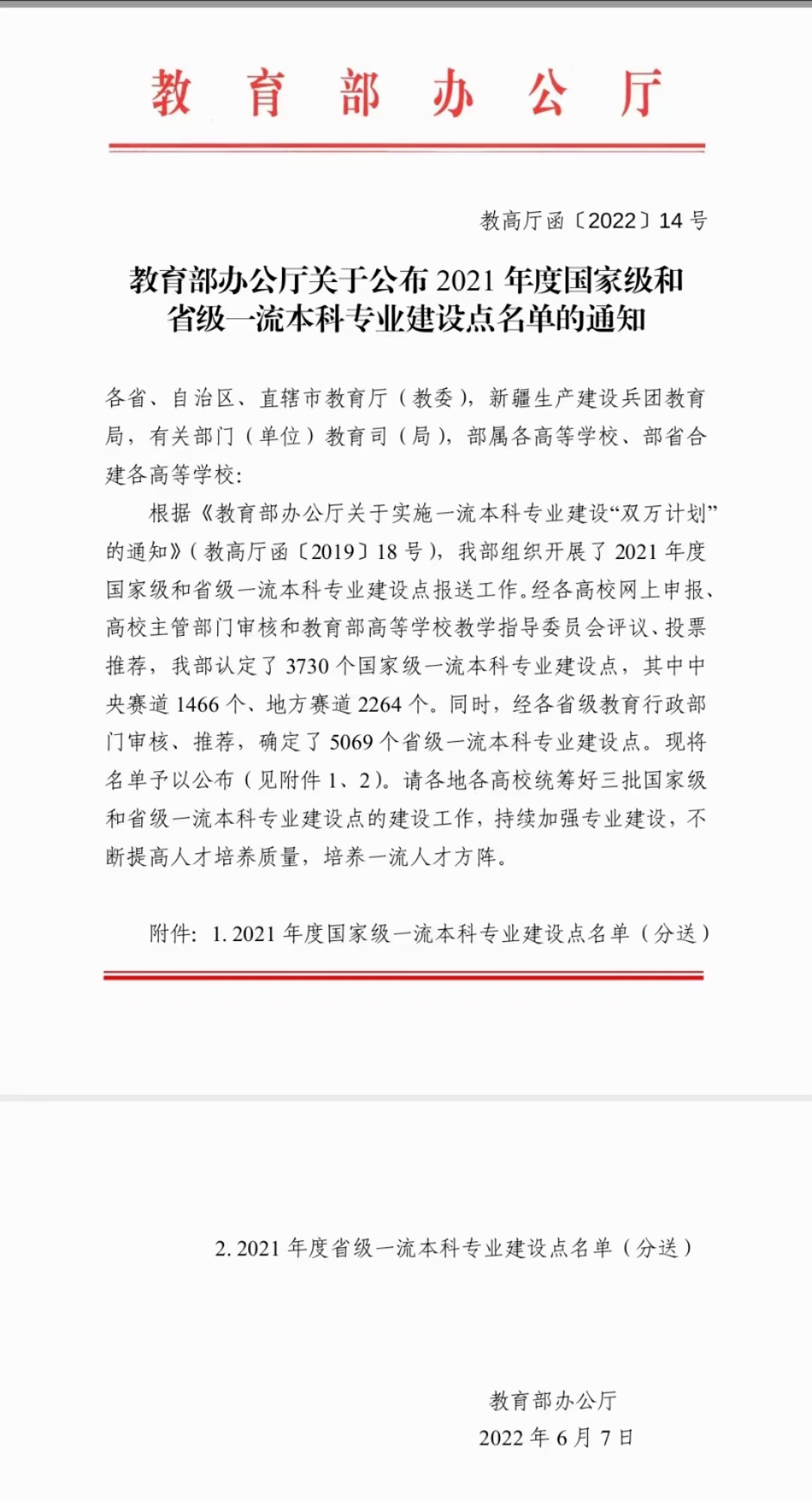 日前,教育部办公厅下发了《关于公布2021年度国家级和省级一流本科专业建设点名单的通知》,公司生物科学专业入选国家级一流本科专业建设点。